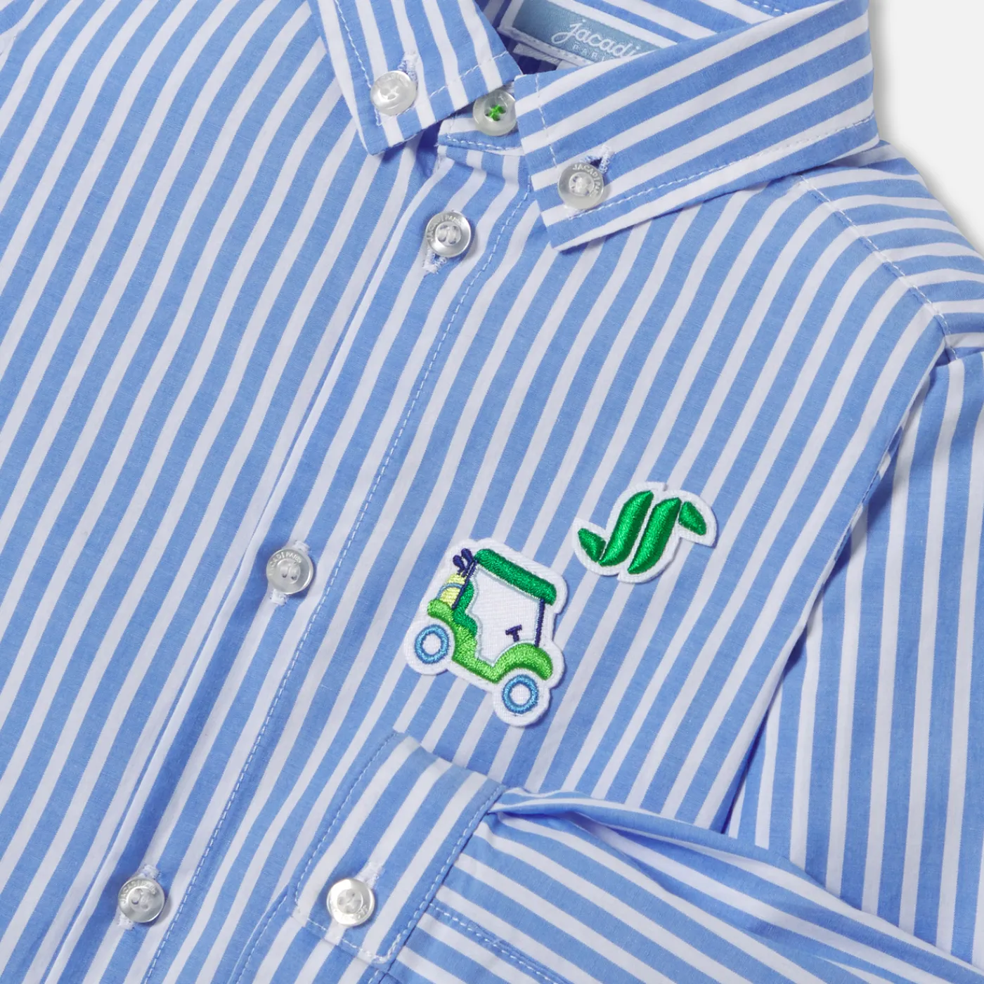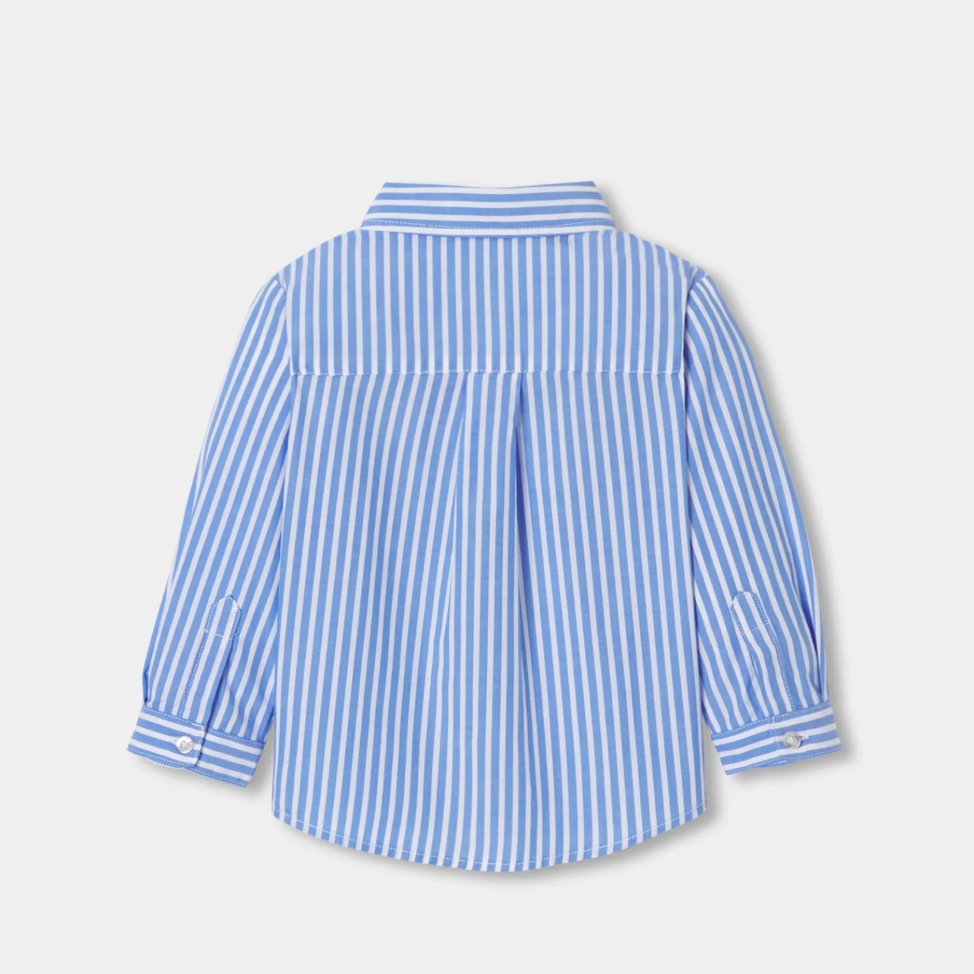 Worn open over a printed t-shirt with rolled-up twill pants, the baby boy shirt is available in organic cotton for back-…