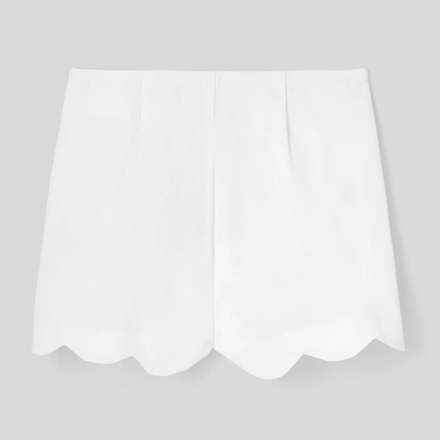 Girl shorts in cotton piqué for a chic and comfy season. Poplin lining and scalloped hem, elastic-adjustable waistband …