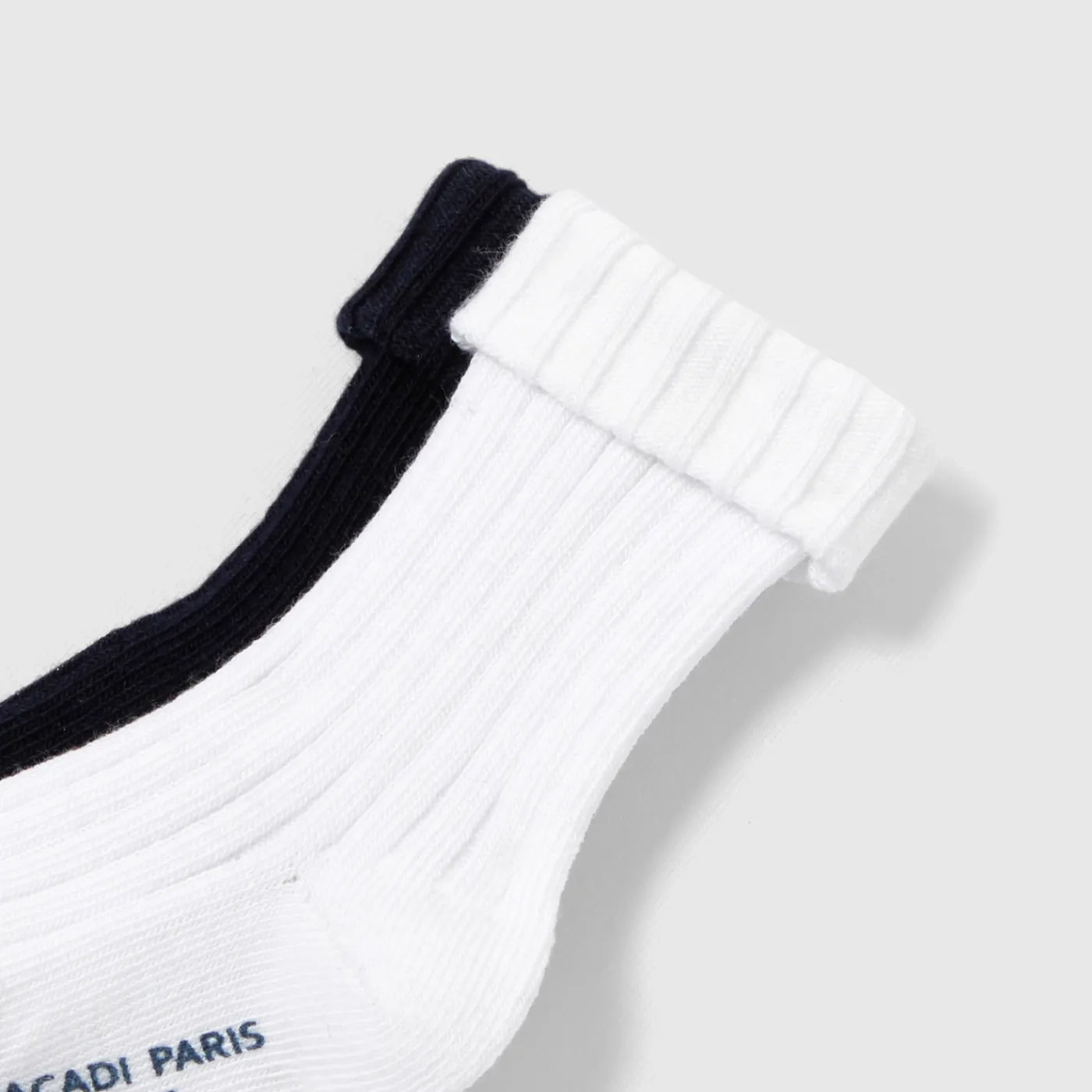 Softness and comfort for these baby boy socks. With a ribbed knit easy to slip on and embellished with a cuff, they are …