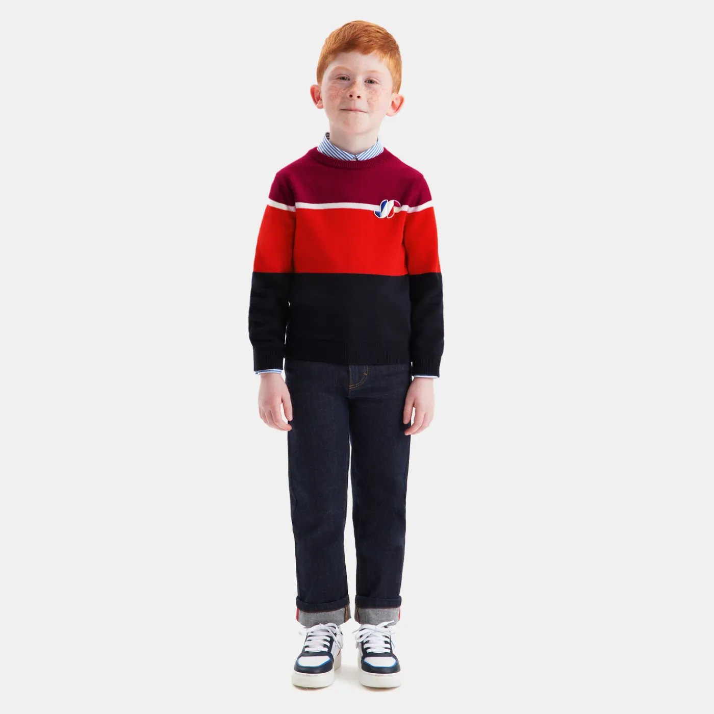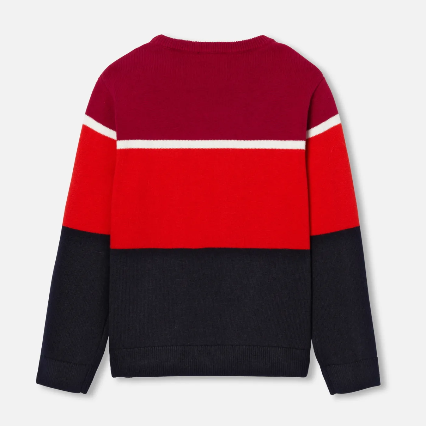 Revamped and styled, this classic boy sweater features wide stripes for a highly contemporary color block look. In organ…