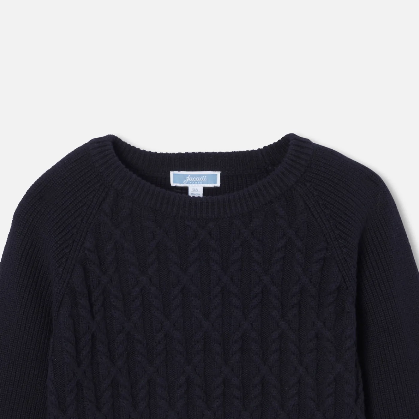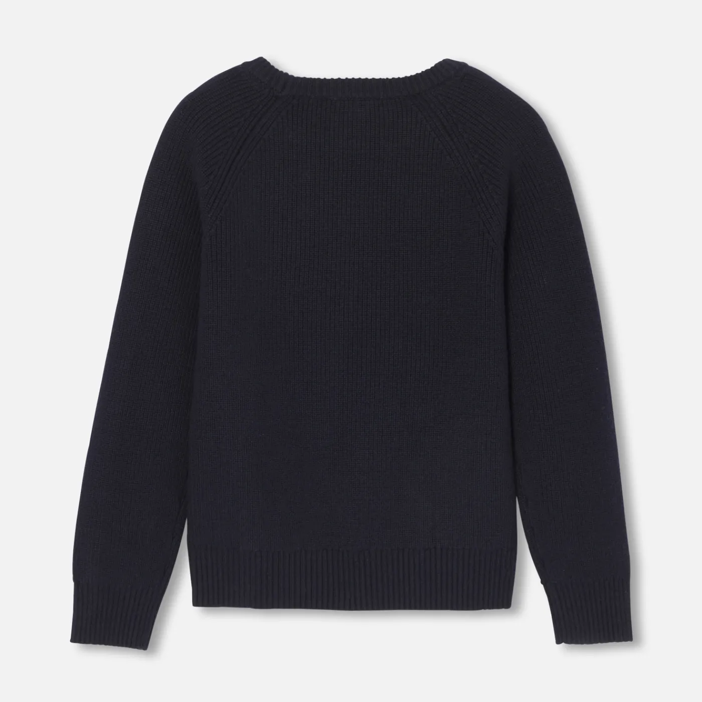 Inspired by the iconic Irish sweater, this boy sweater is available in sustainable wool and cotton for back-to-school. P…