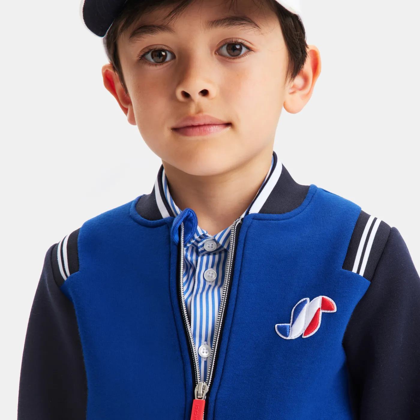 Find all the Jacadi spirit infused in this impeccable boy cardigan. Based on the modern codes of the iconic Varsity jack…