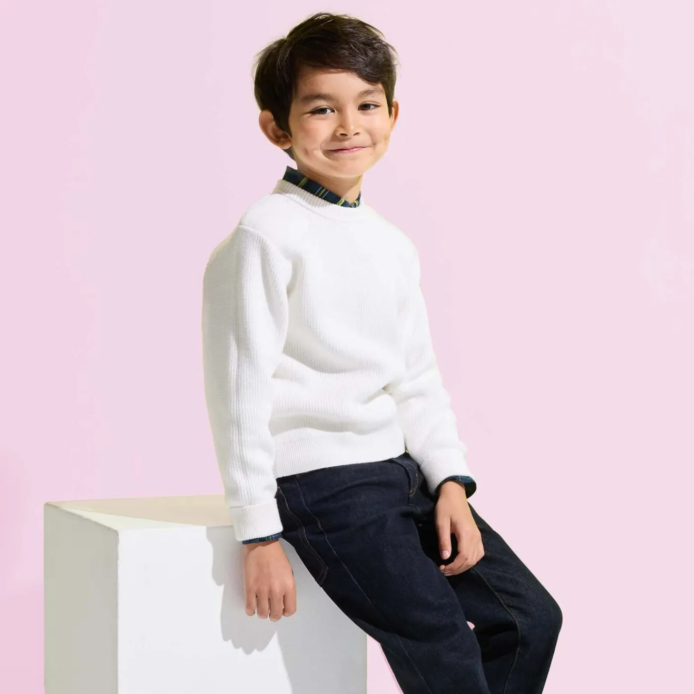 Inspired by the nautical wardrobe, this child sweater is available in a chic, minimalist version for back-to-school. Mad…