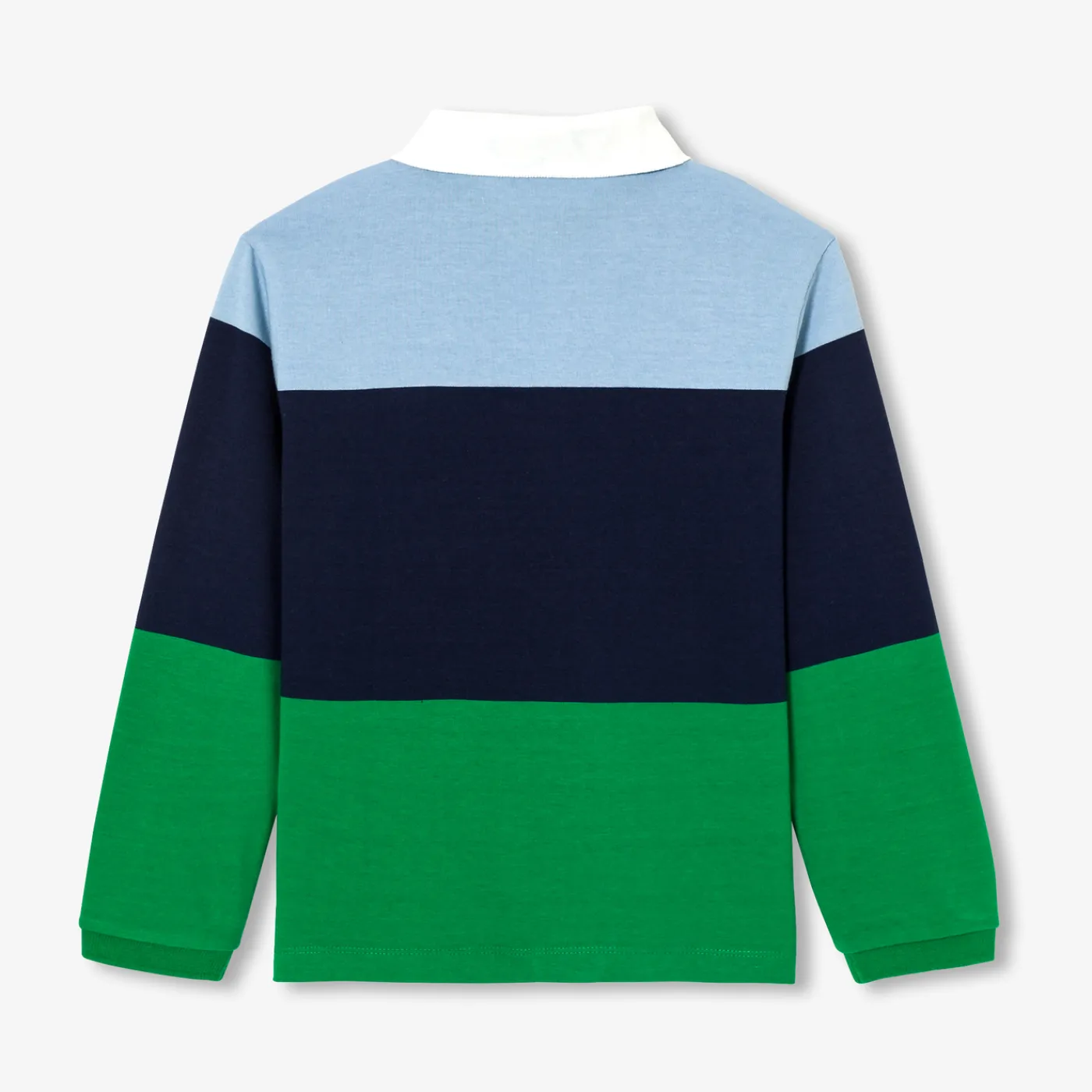 This boy rugby polo retains its status as an everyday essential. Updated with a color block look and wide stripes, the r…