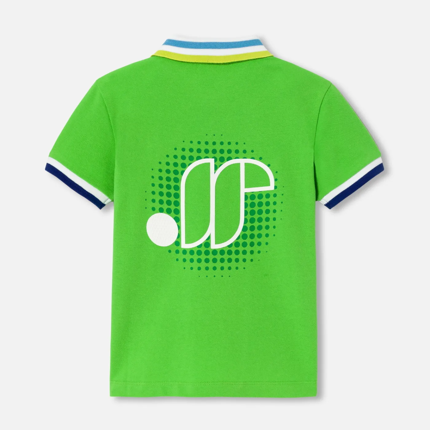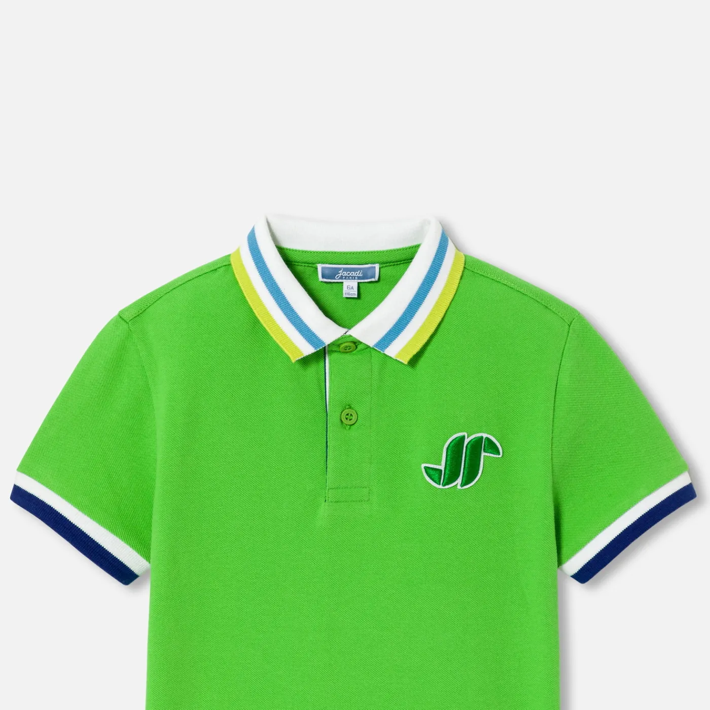 Inspired by the golf polo, this boy polo is made from organic cotton piqué. Tinted a lively pop green, contrasting fini…