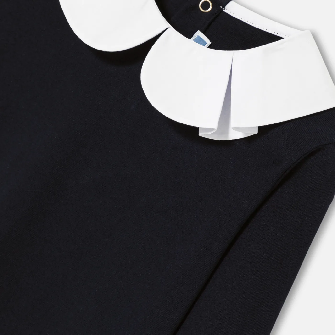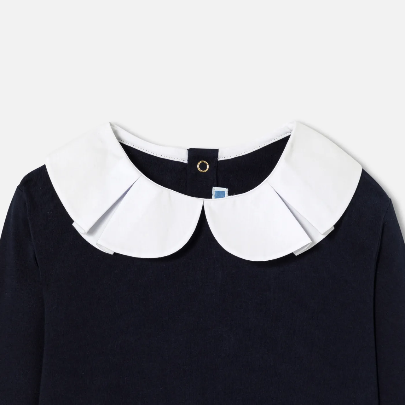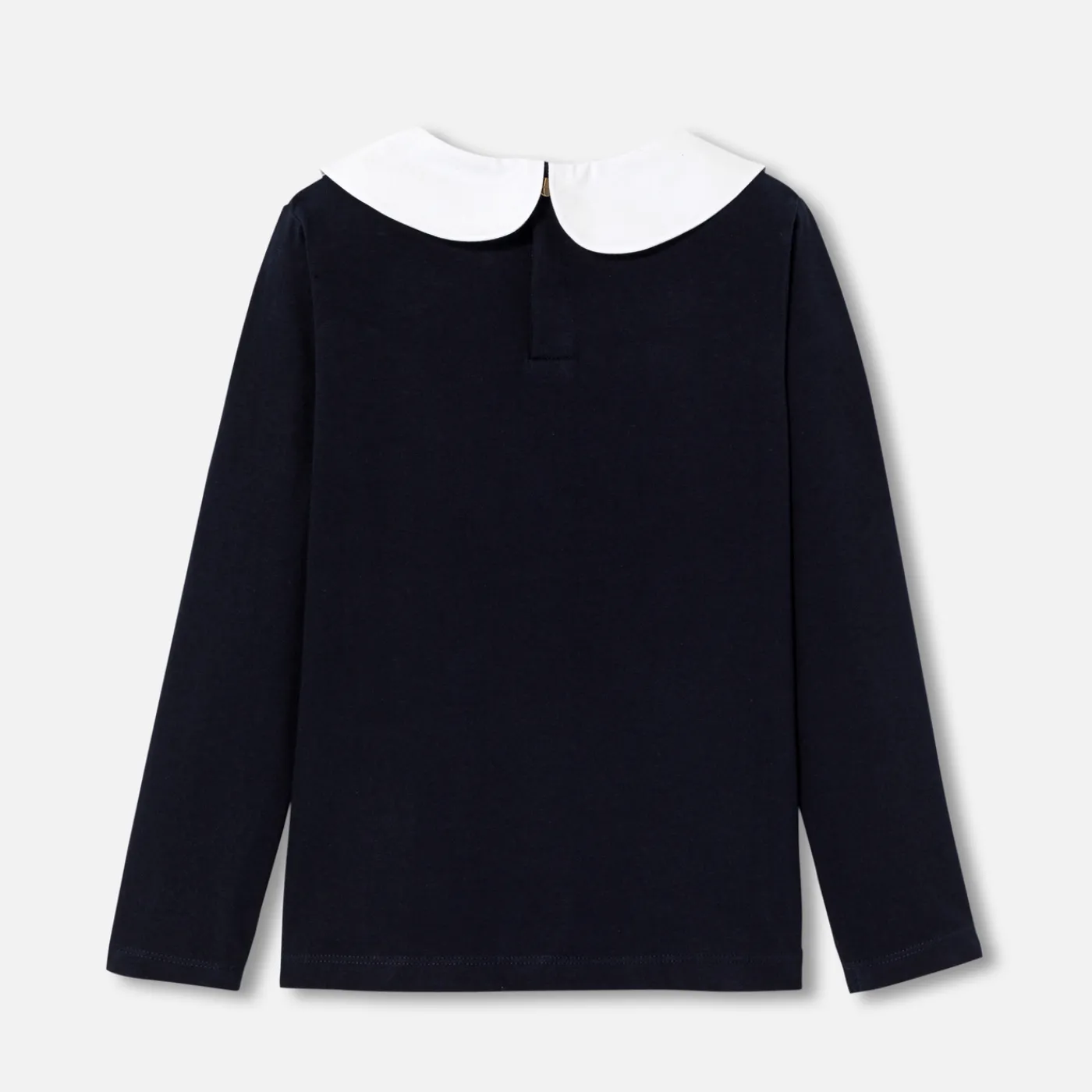 Adorned with a pleated Peter Pan collar in white poplin, this girl long-sleeved T-shirt reveals all its chic. Ideal for …