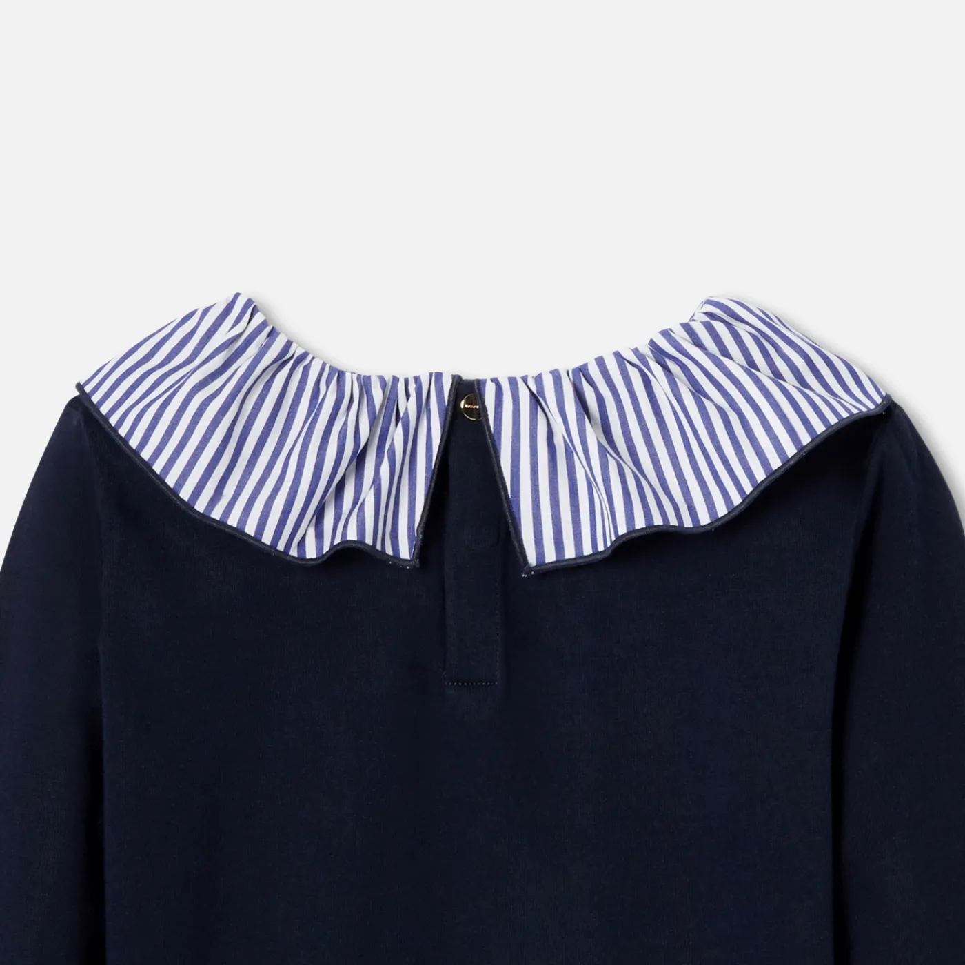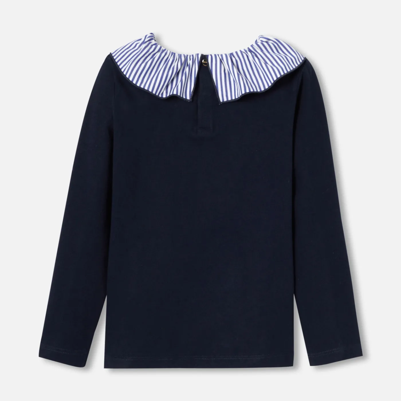 A wardrobe classic embellished with a striped poplin collar, this girl t-shirt remains an essential. Worn on its own or …