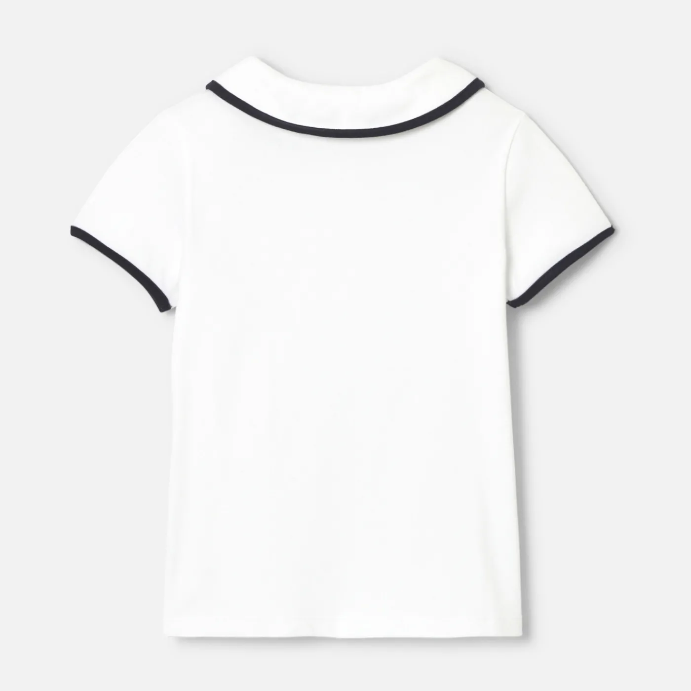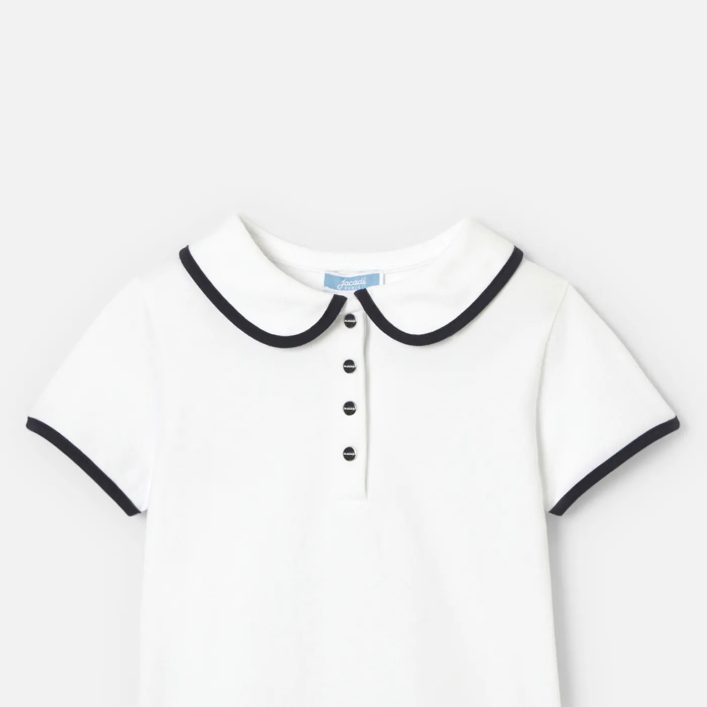 This girl polo shirt gains in elegance with its Claudine collar and contrasting finishes. In cotton piquéand buttoned a…