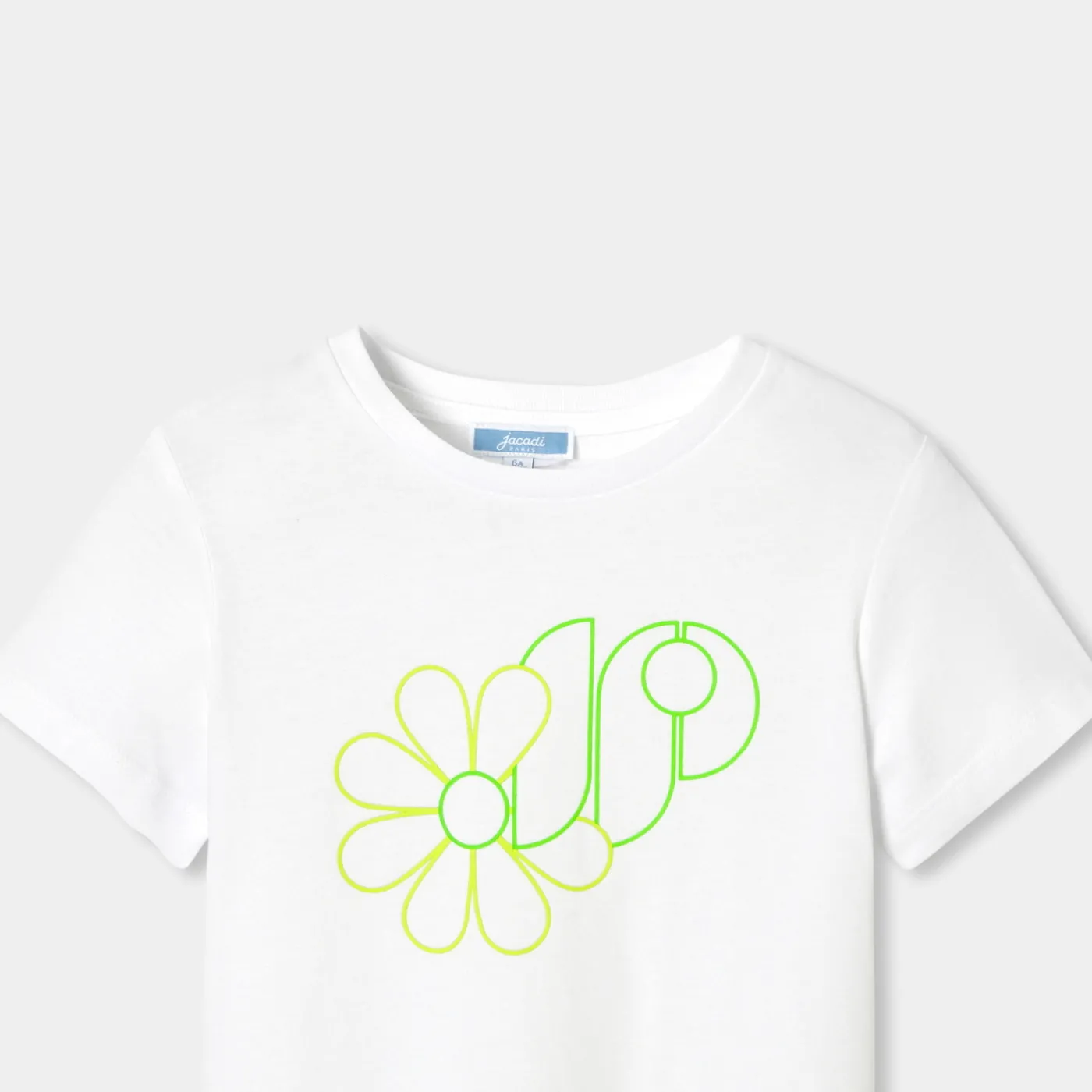 Printed with a 3D message in bright pop colors, this must-have girl t-shirt is available in organic cotton for the start…