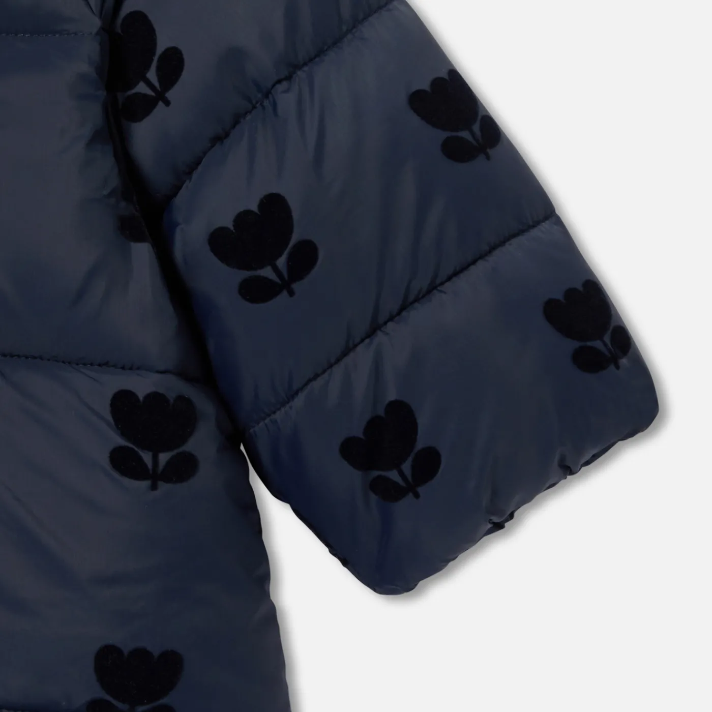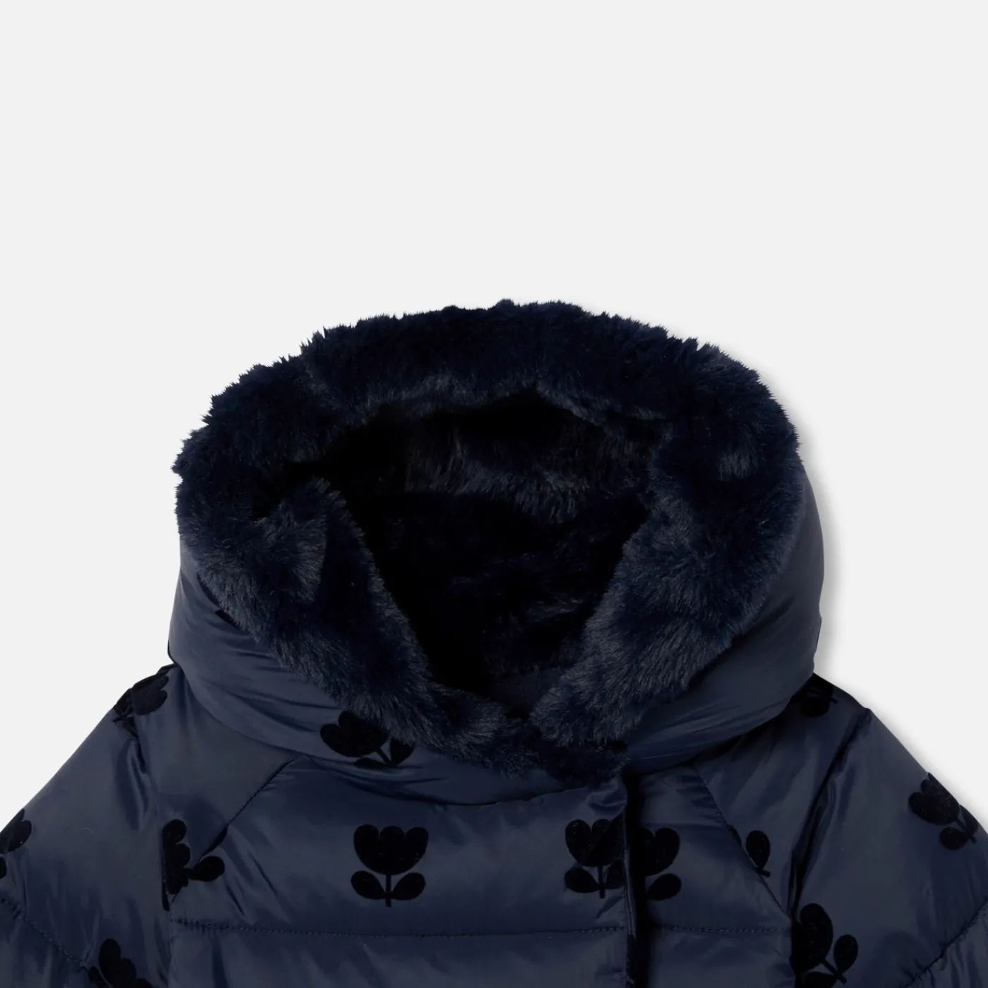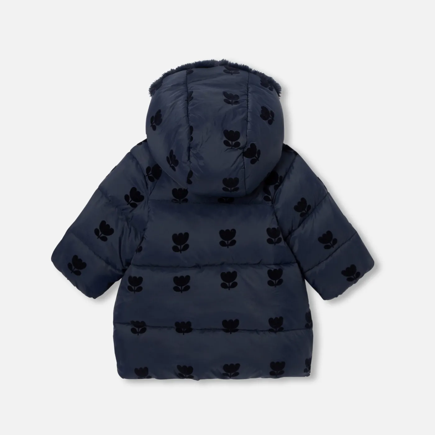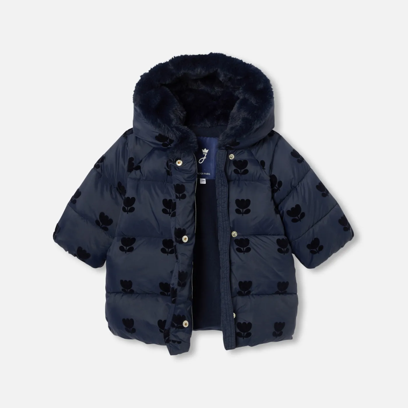 As chic as it is essential, pretty flocked tulips have been added to this baby girl padded jacket. Its water-repellent n…